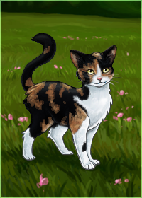 Character Galleries and Family Trees / Re: -our little i n f i n i t y [Finny's Gallery]« on: October 30, 2012, 07:57:53 pm »![]() name;; Paintedcanvas gender;; Female sexuality;; Straight age;; 2 years && 2 months alliance;; Shadowclan rank;; Warrior appearance;; Painted is built rather lean with a long slender tail and slightly shorter legs then on your average cat. Her face is angular but gets more rounded around her cheeks with small ears that are a bit rounded at the points. Probably her most striking feature are her eyes which are a deep gold-yellow with hints of green and lighter yellow mixed throughout almost like a kaleidoscope. As far as her fur goes Painted has a feathery calico pelt with patches of ginger and black tabby. During the winter her think fur is very good at keeping her warm although in the summer it creates a bit of a shedding problem. persona;; Painted is purely a visionary, she can spend hours just contemplating her very existence. Although this causes her to get distracted rather easily, often stopping in the middle of sentences or wandering off alone to explore. To those who don't know her very well she's irresponsible and spacey, not driven like the proper warrior should be. She doesn't mind their harshness though and is fiercely loyal despite her tenancy to fade in and fade out on reality. Painted does have plenty of flaws though number one being her temper. Even though she is often calm and peaceful if any cat were to cross her they've got another thing coming and once you get on her bad side there's a very slim chance she'll ever think twice of you. As well as hot-headed she is known for being irrational when upset or angered, often requiring a few days to come around. Despite all this though Painted is a kindhearted cat with dreams way to big for her mind to contain. history;; Born to a former Shadowclan cat, Painted grew up along side her mother and younger sister. Her mother taught her the ways of the Clans and even told stories about their history and adventures. As for her father, who was a exiled Windclan cat, has never really been in her life. He only stuck around til the kits were born and then he hit the road without a trace. Painted was separated from her mother and littermate during a blizzard when she fell through a snow drift. She still hopes to find her mother and sister some day although she's almost given up hope on that ever happening. After the blizzard Painted ended up wandering into Shadowclan territory where they took her in and trained her to hunt and fight as a warrior. She is extremely grateful to them for taking her in and would fight to the death to defend Shadowclan other;; advanced;; 6